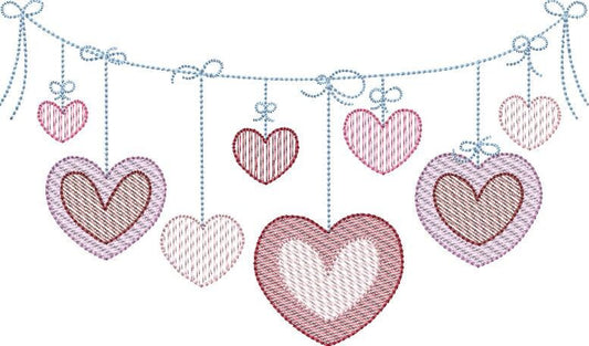Hanging Hearts Banner Sketch Fill Machine Embroidery Quick Stitch Design