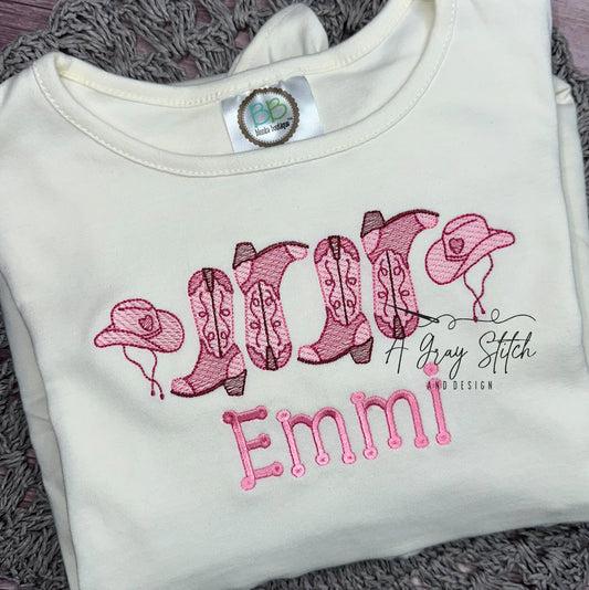 Valentine's Cowgirl Boots and Hat Sketch Design