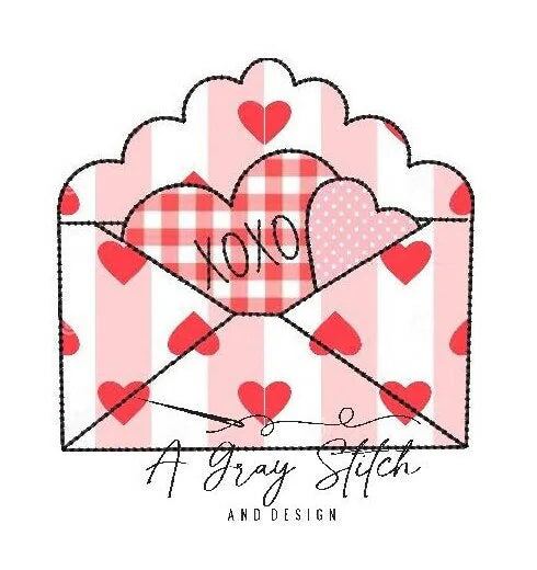 Scallop Trimmed Edge Valentine's Envelope Bean Stitch Applique Machine Embroidery Design Quick Stitch