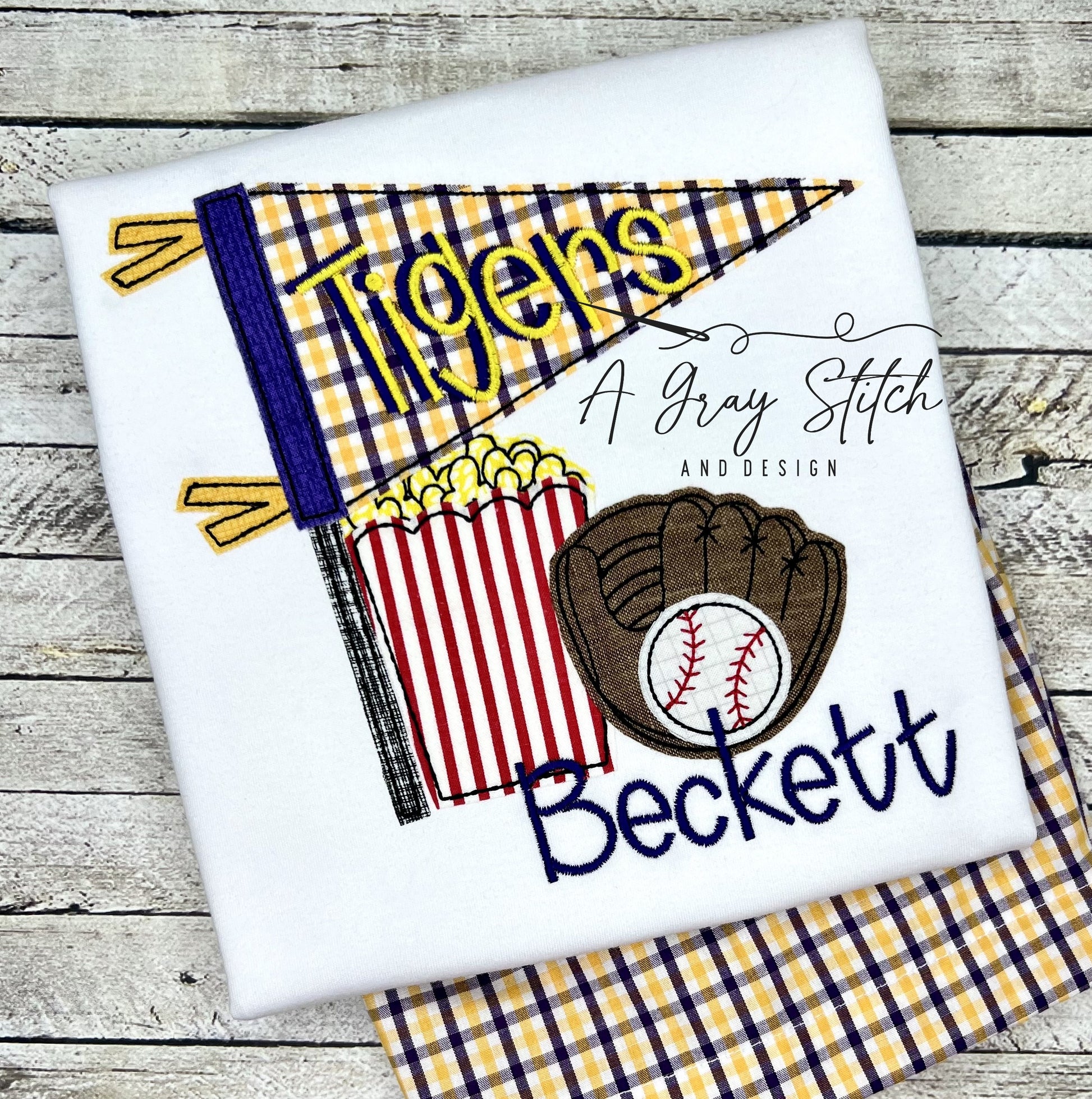 Bean Stitch Applique Baseball Essentials Machine Embroidery Design