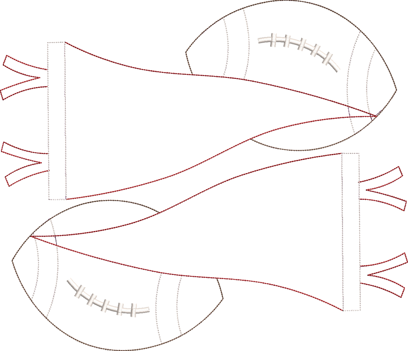 Bean Stitch Applique Double Pennant Flag with Split Footballs