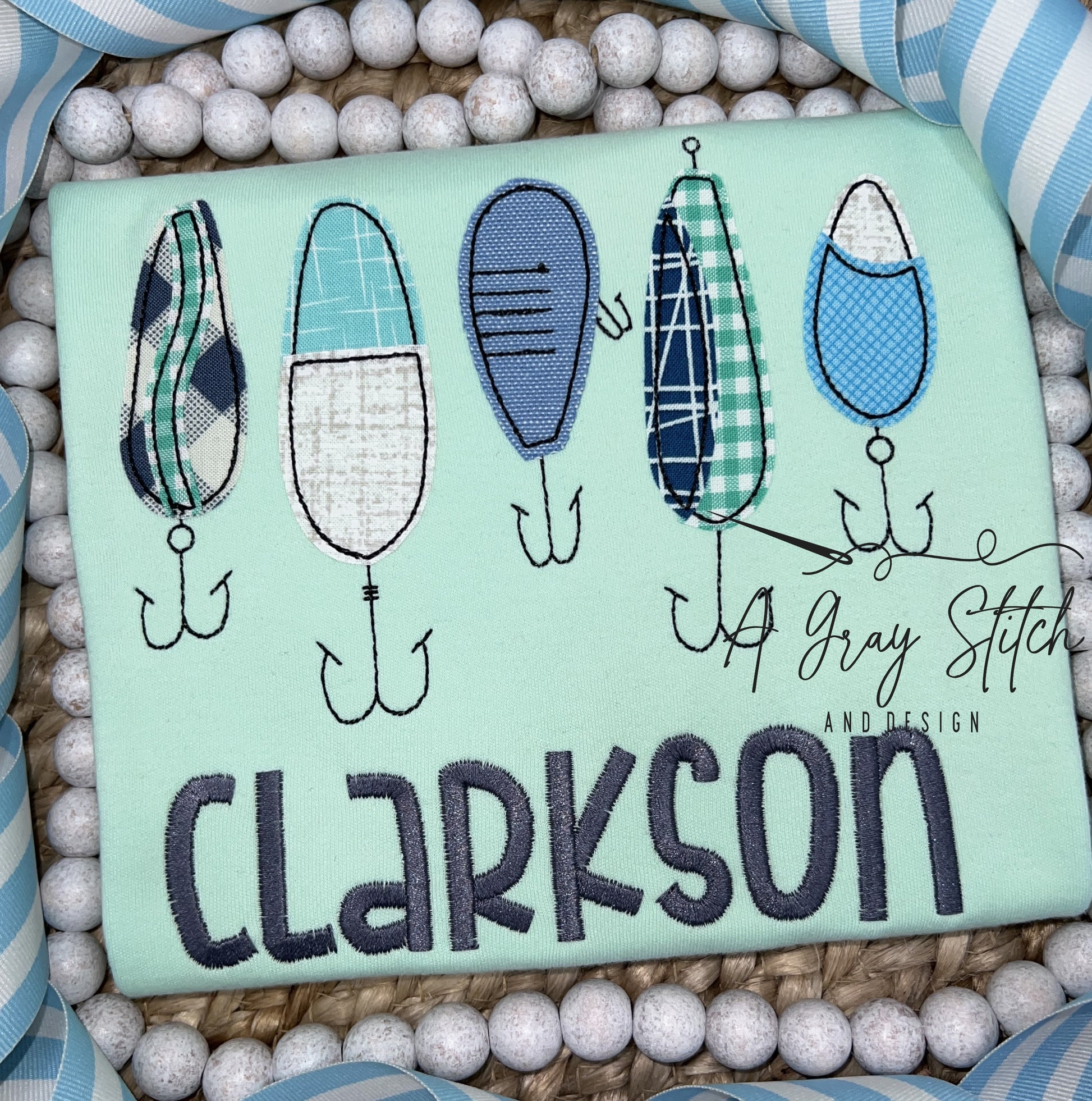 Bean Stitch Applique Fishing Lures Machine Embroidery Quick Stitch Design