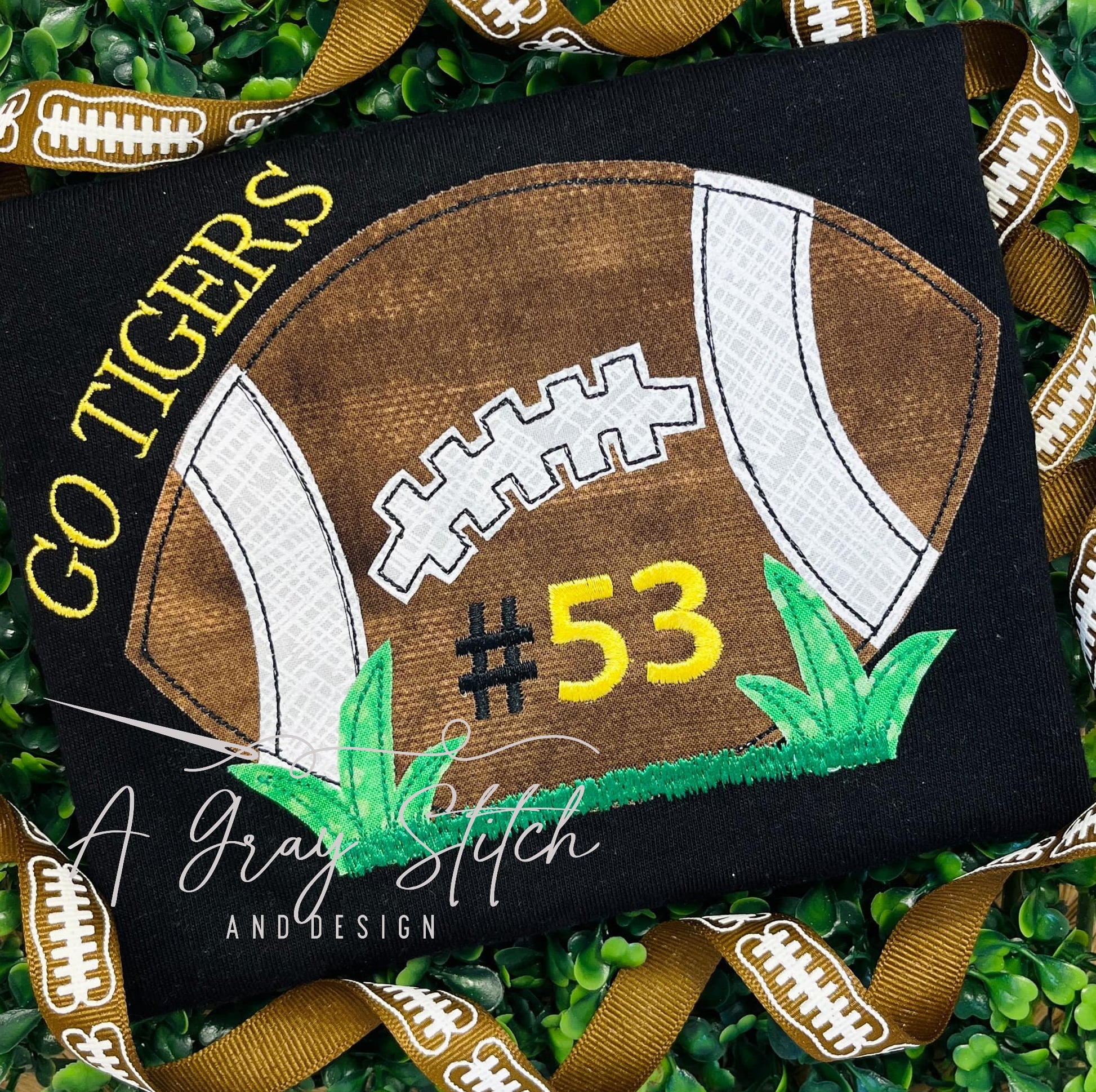 Bean Stitch Applique Football in Grass Machine Embroidery Design