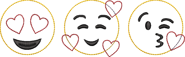 Bean Stitch Applique Heartmoji Valentine's Day Machine Embroidery Design Quick Stitch