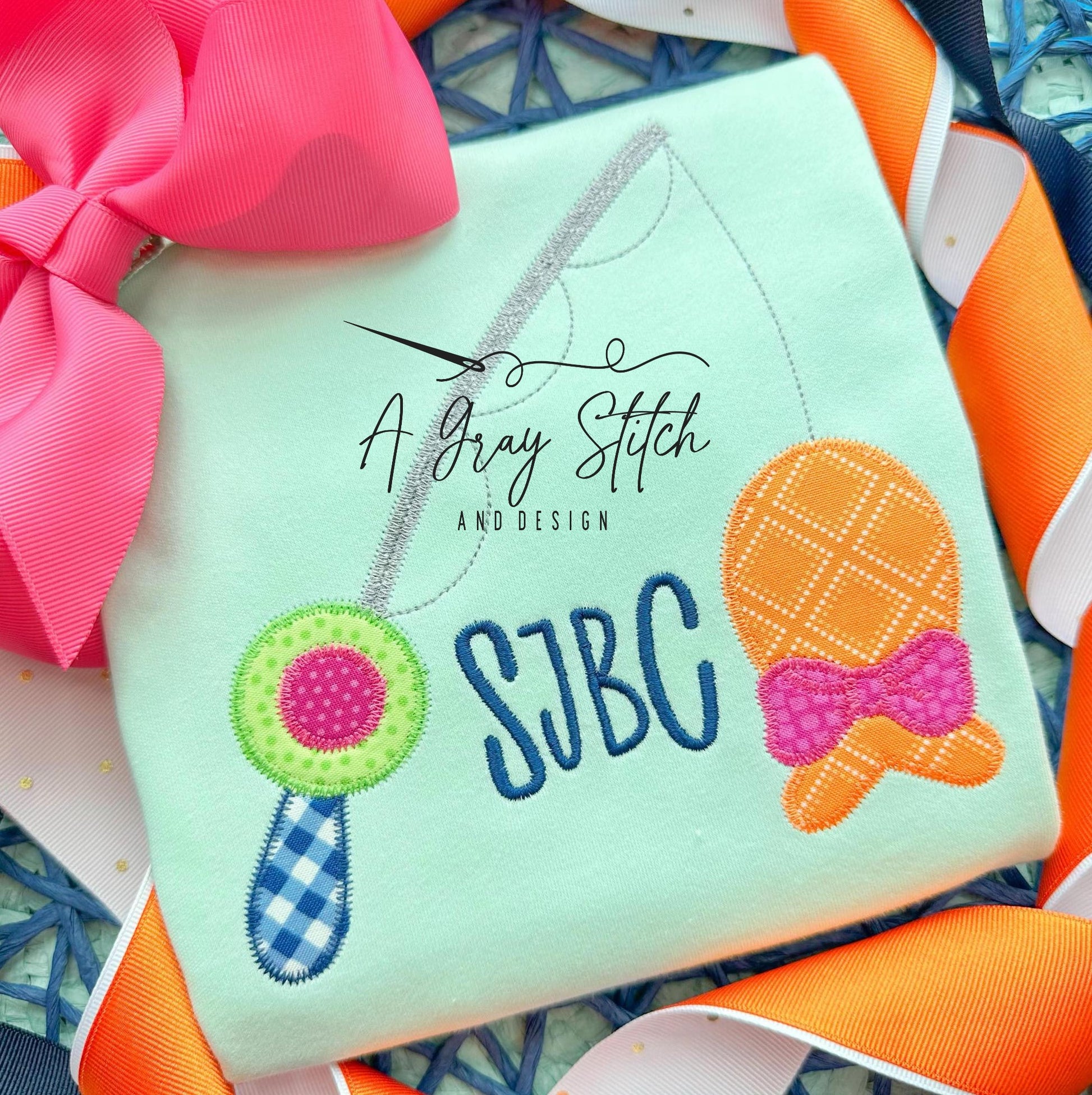 Fishing Pole with Fish and Bow Zig Zag Applique Machine Embroidery Design
