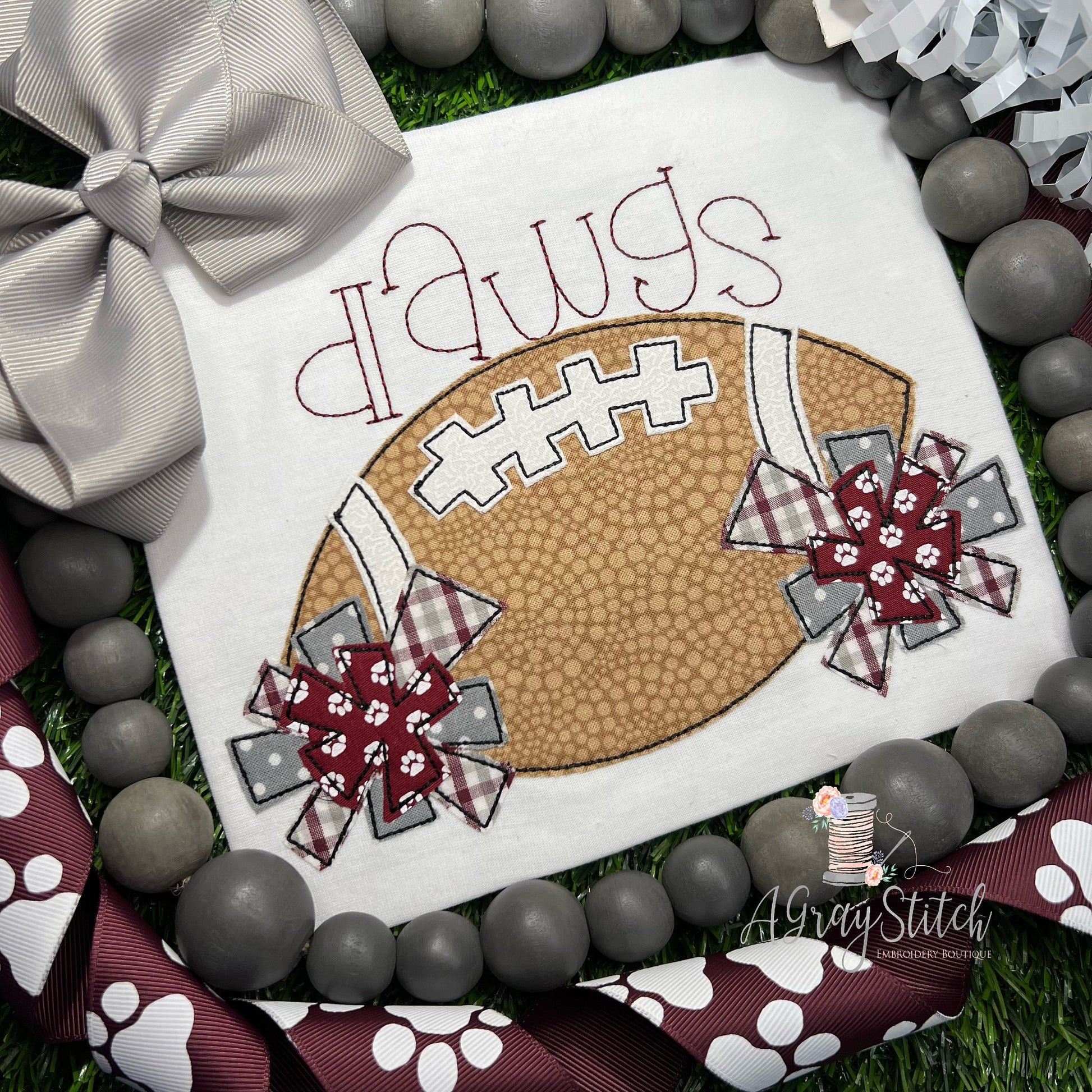 Football with Pom Poms Machine Embroidery Applique Design Quick Stitch