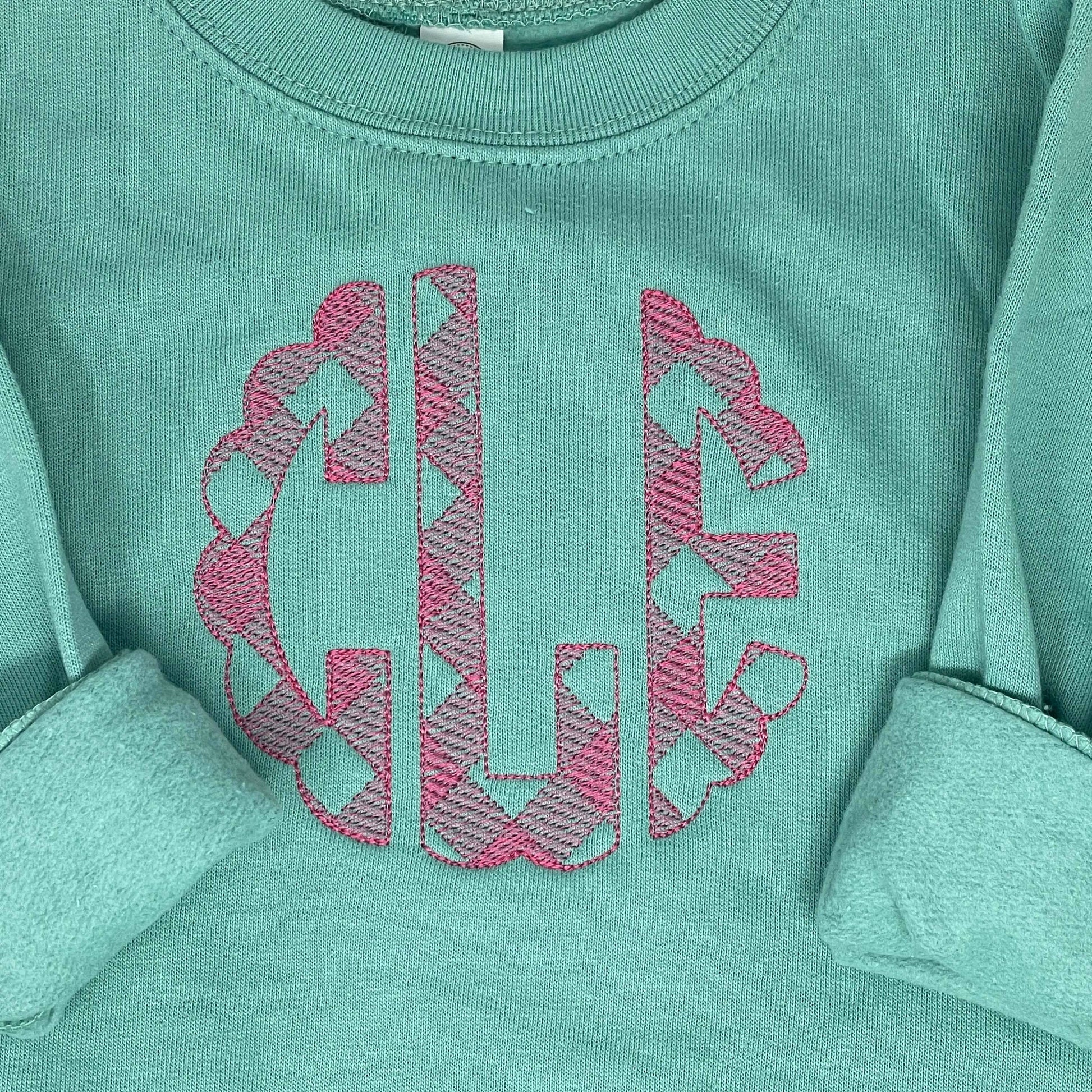 Gingham Scallop Monogram Sketch Fill Machine Embroidery Design BX included