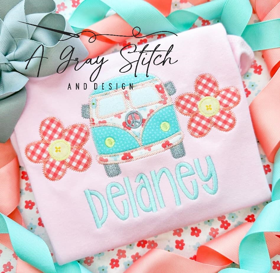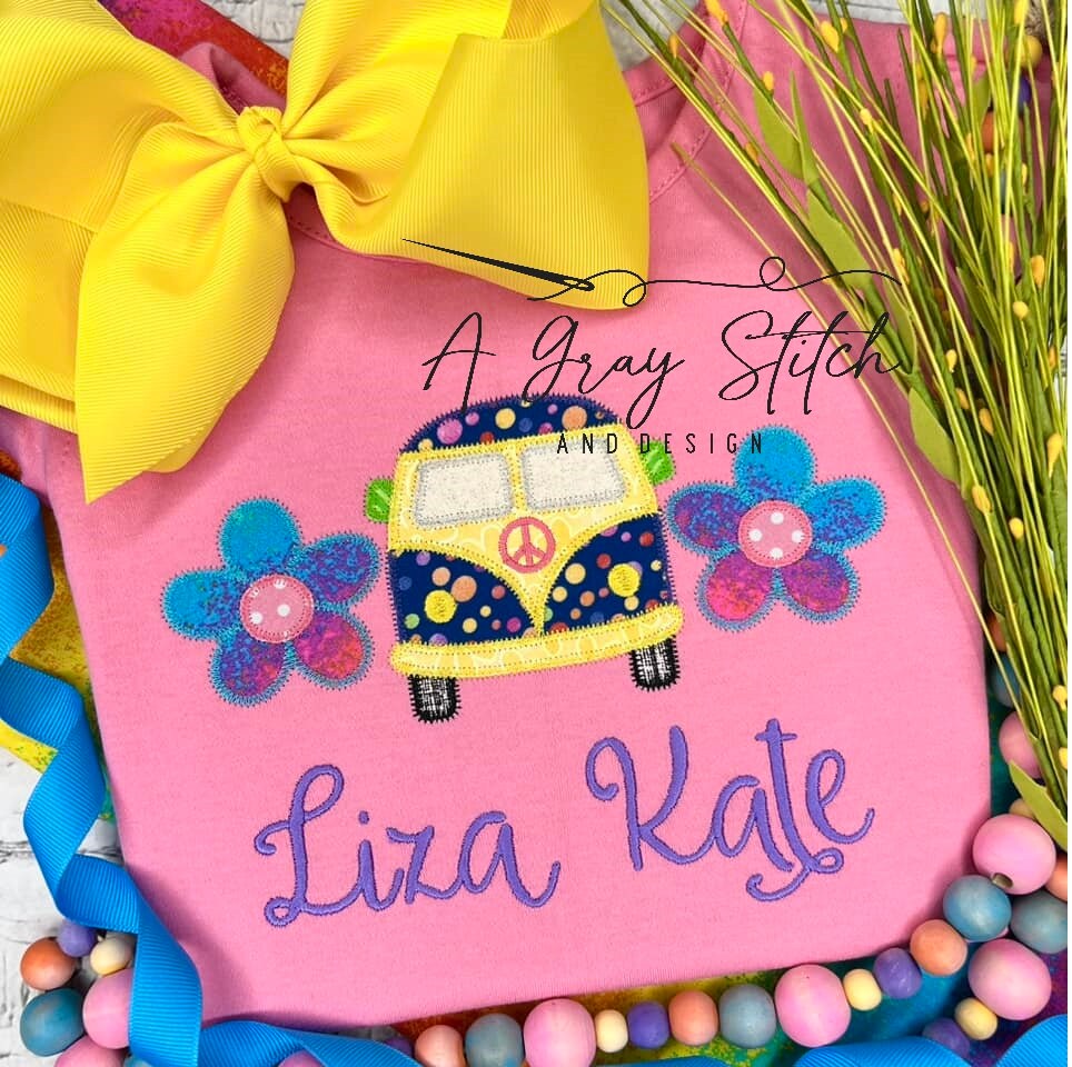 Groovy Retro Van and Daisies Zig Zag Applique Machine Embroidery Design