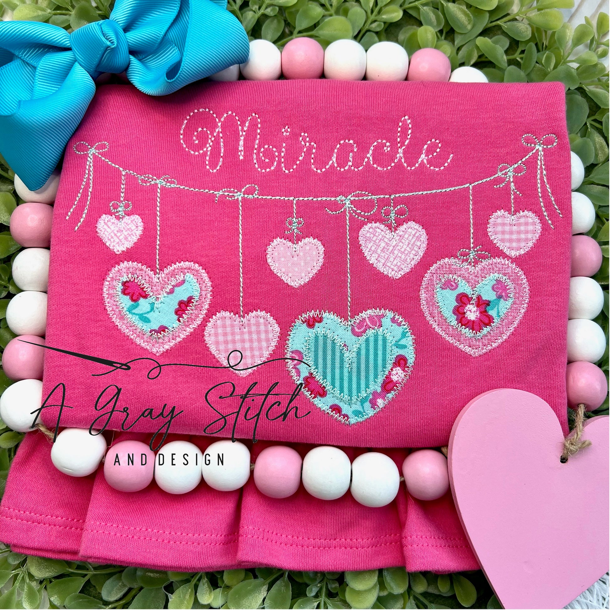 Hanging Hearts Banner Valentine's Day Zig Zag Applique Quick Stitch Machine Embroidery Design