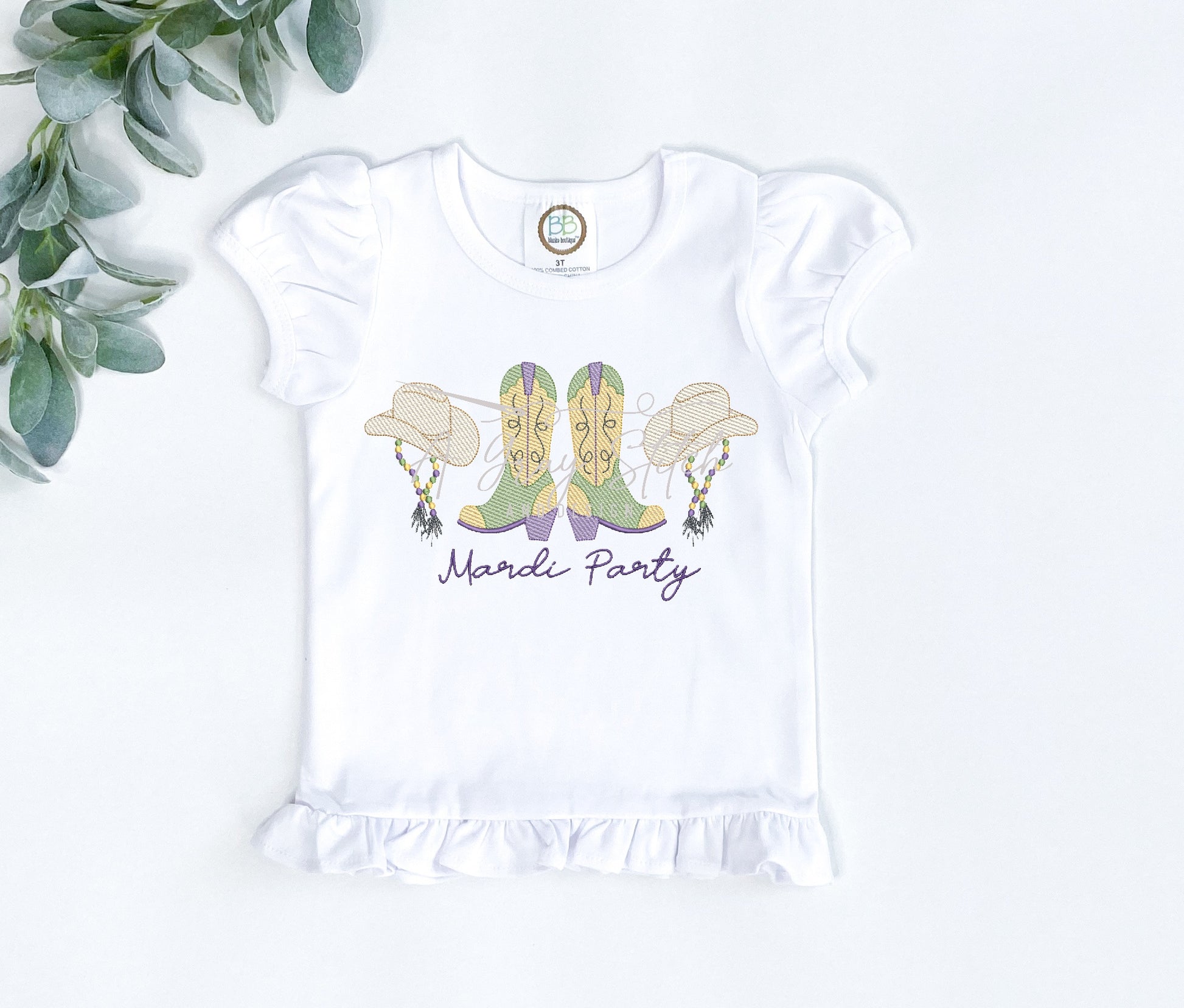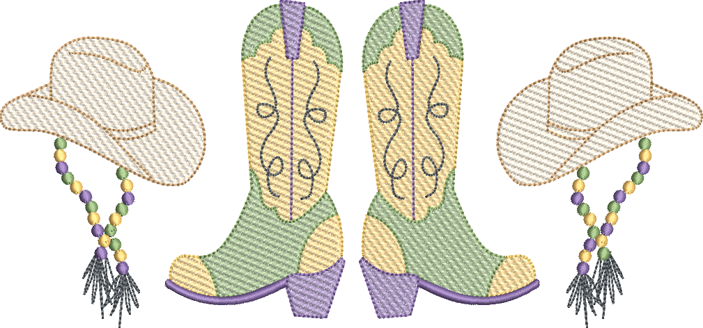 Mardi Gras Cowgirl Boots and Hat Sketch Design