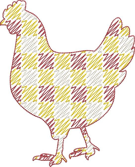 Quick Stitch Sketchy Chicken Embroidery Design Gingham Design