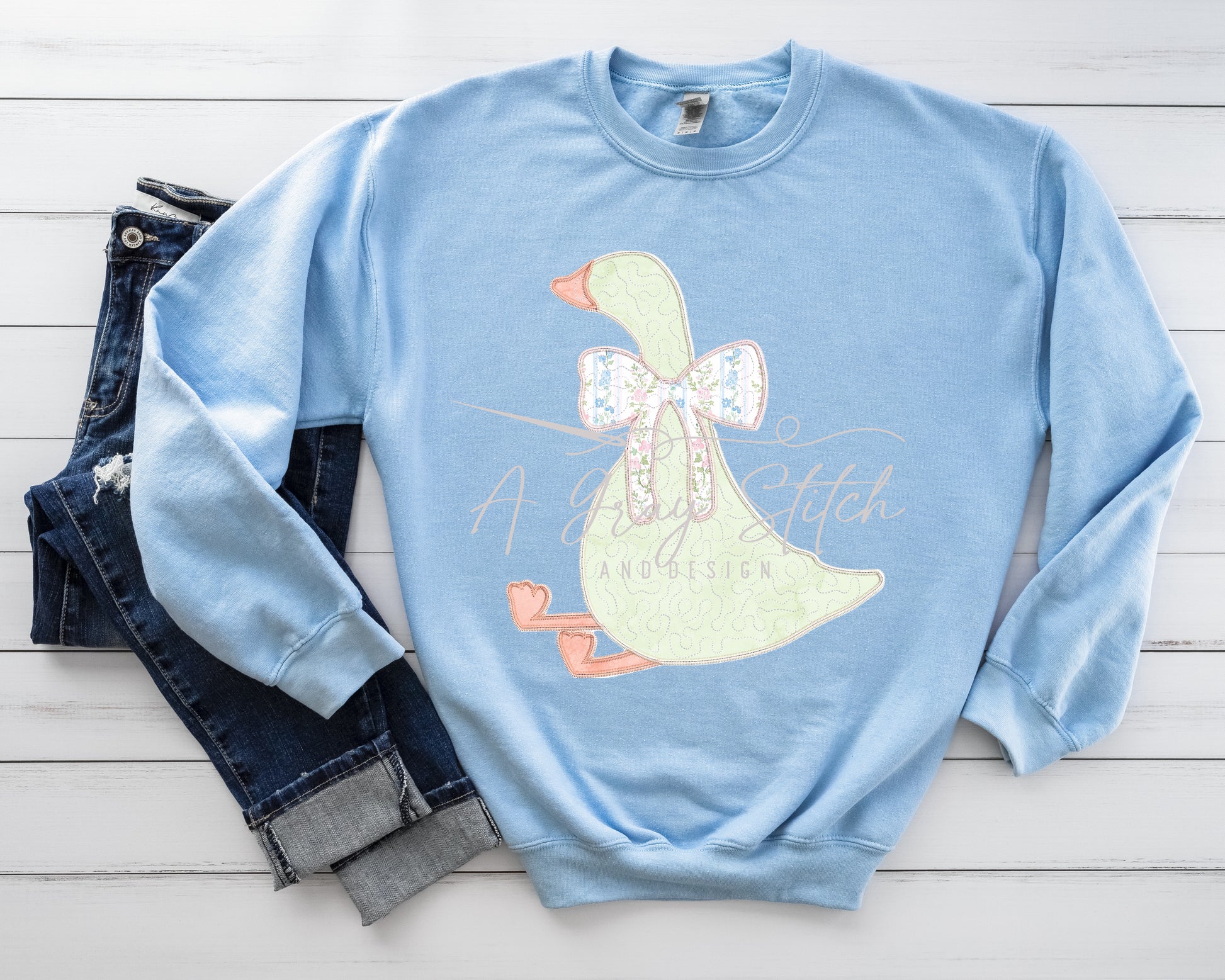 Placement and tackdown stitch for batting to give the quilted feel in the first two steps before the patchwork applique pieces.