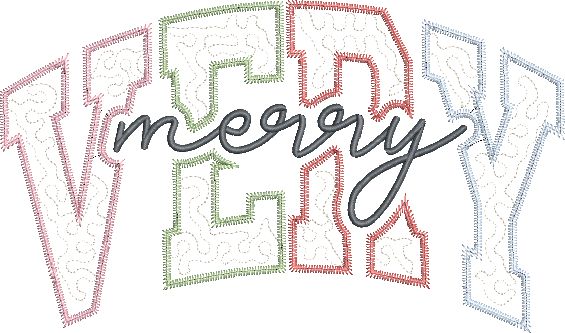 Quilted Solid Very Merry Applique Design