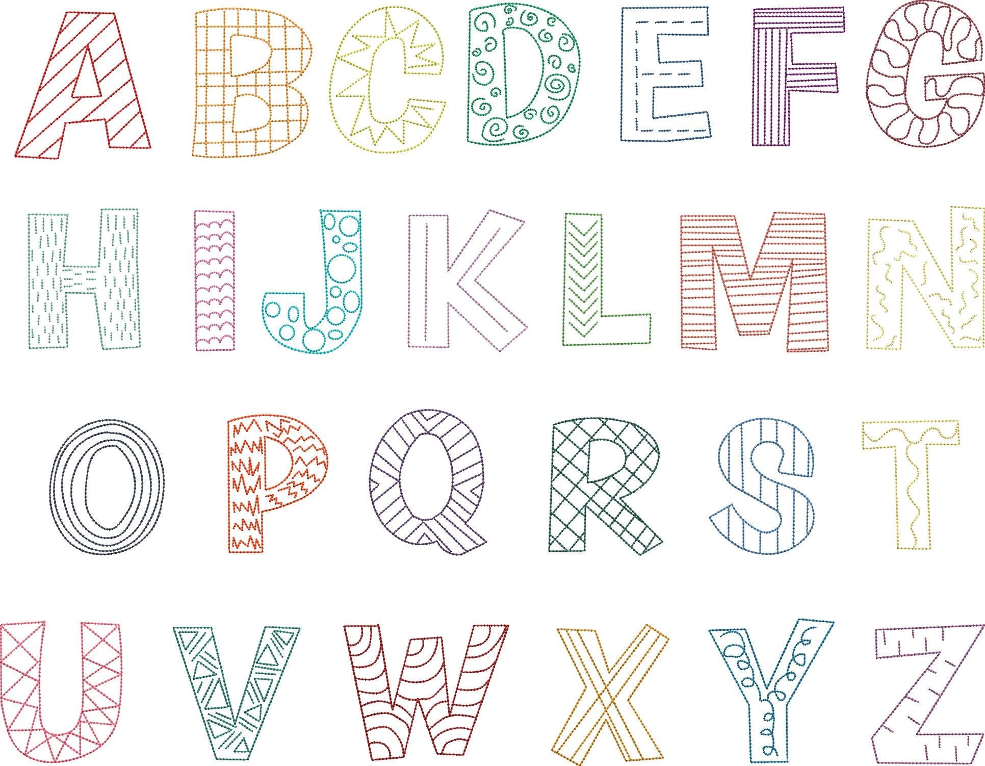 Scribble Doodle Embroidery Font 1.5 inches 2 inches 3 inches Bean Stitch Doodle Sketch Font BX included