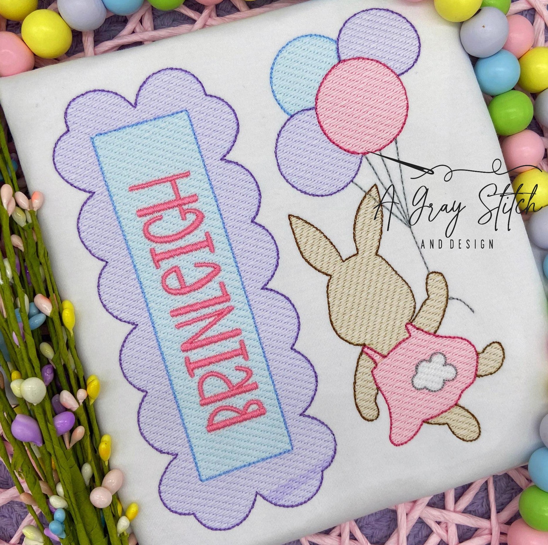 Sketch Fill Floating Balloon Girl Bunny Quick Stitch Easter Machine Embroidery Design