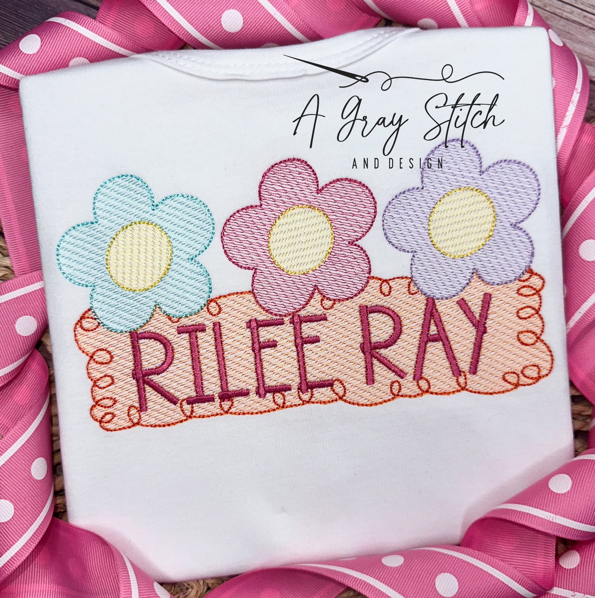 Sketch Fill Groovy Daisy Trio Quick Stitch Machine Embroidery Design