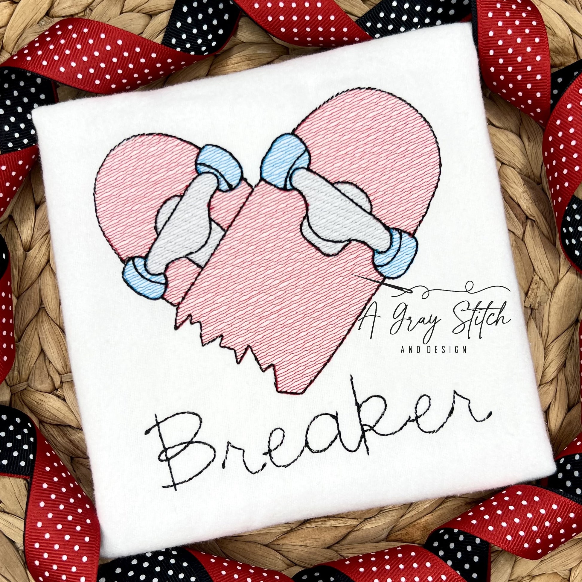 Sketch Fill Heart Breaker Skateboard Valentine's Day Machine Embroidery Quick Stitch