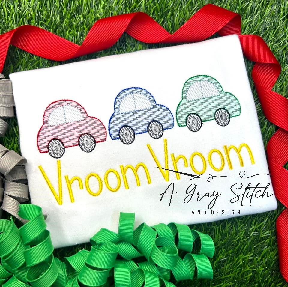 Sketch Fill Riding Car Trio Quick Stitch Boy's Machine Embroidery Design