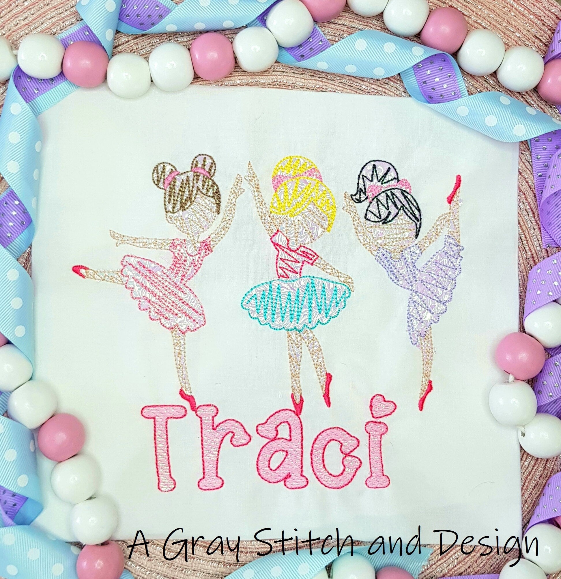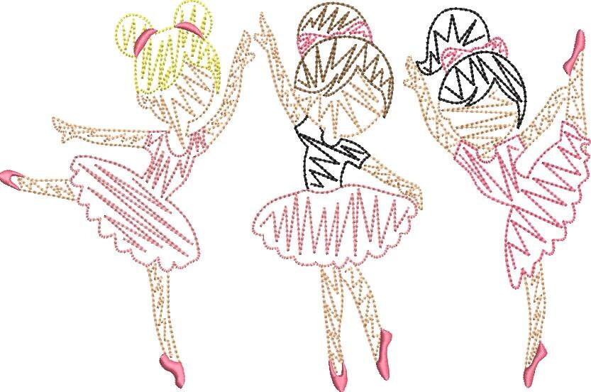 Sketchy Ballerina Trio Embroidery Design Quick Stitch