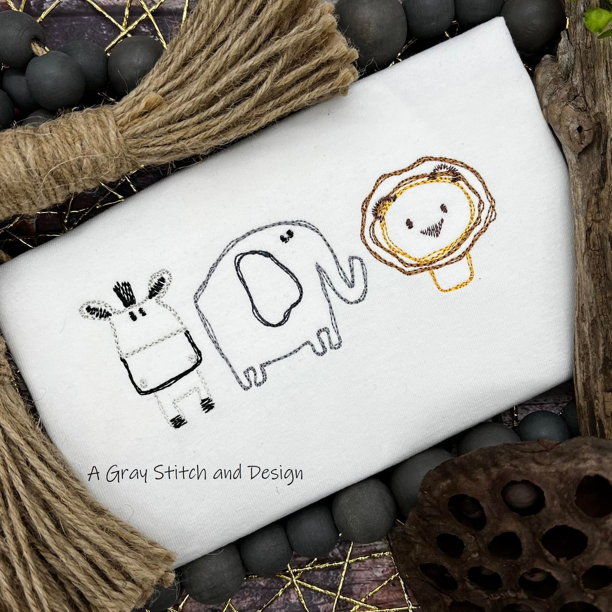 Sketchy Zoo Trio Embroidery Design Quick Stitch Lion Zebra Elephant Embroidery Design