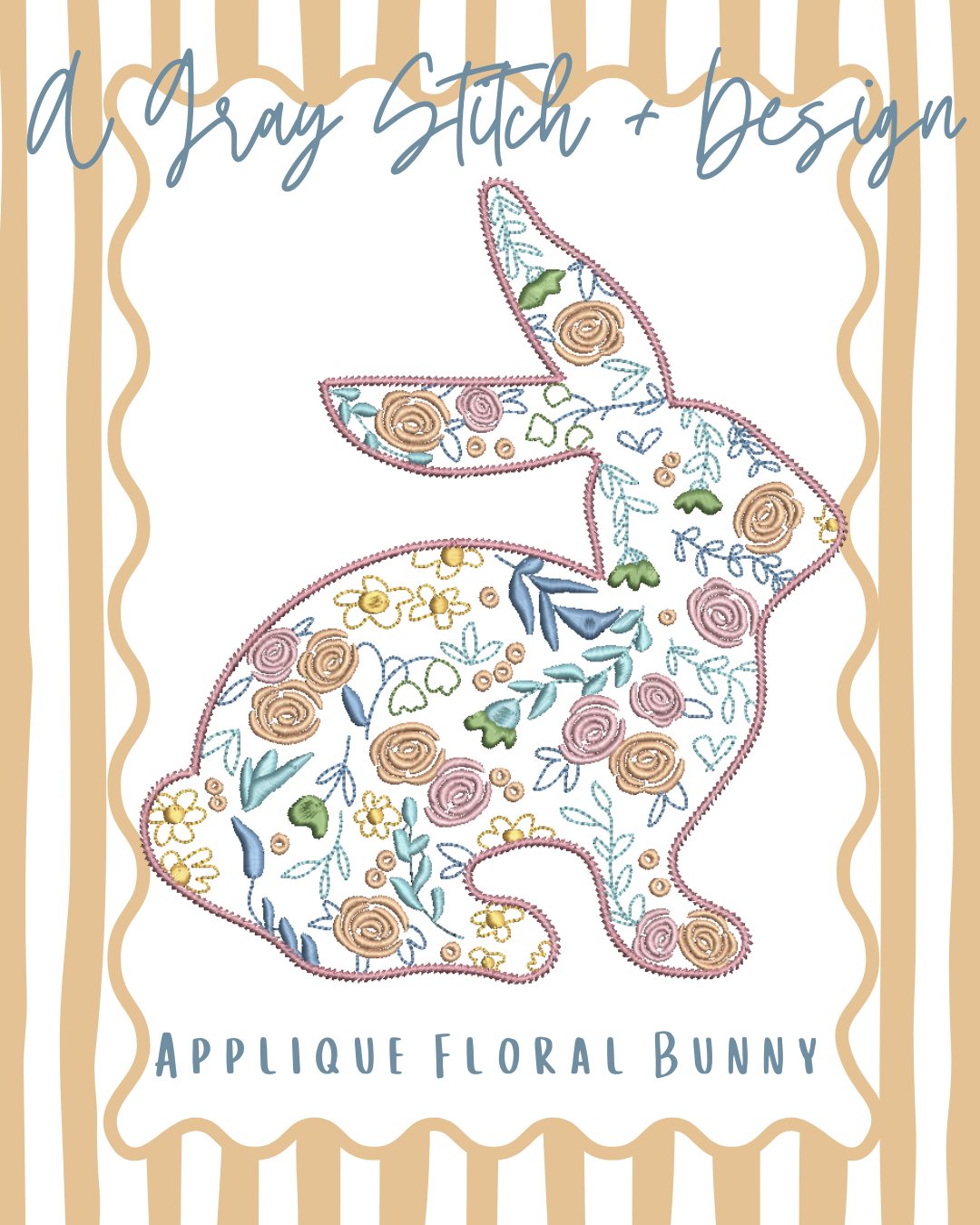 Vintage Stitch Applique Floral Bunny
