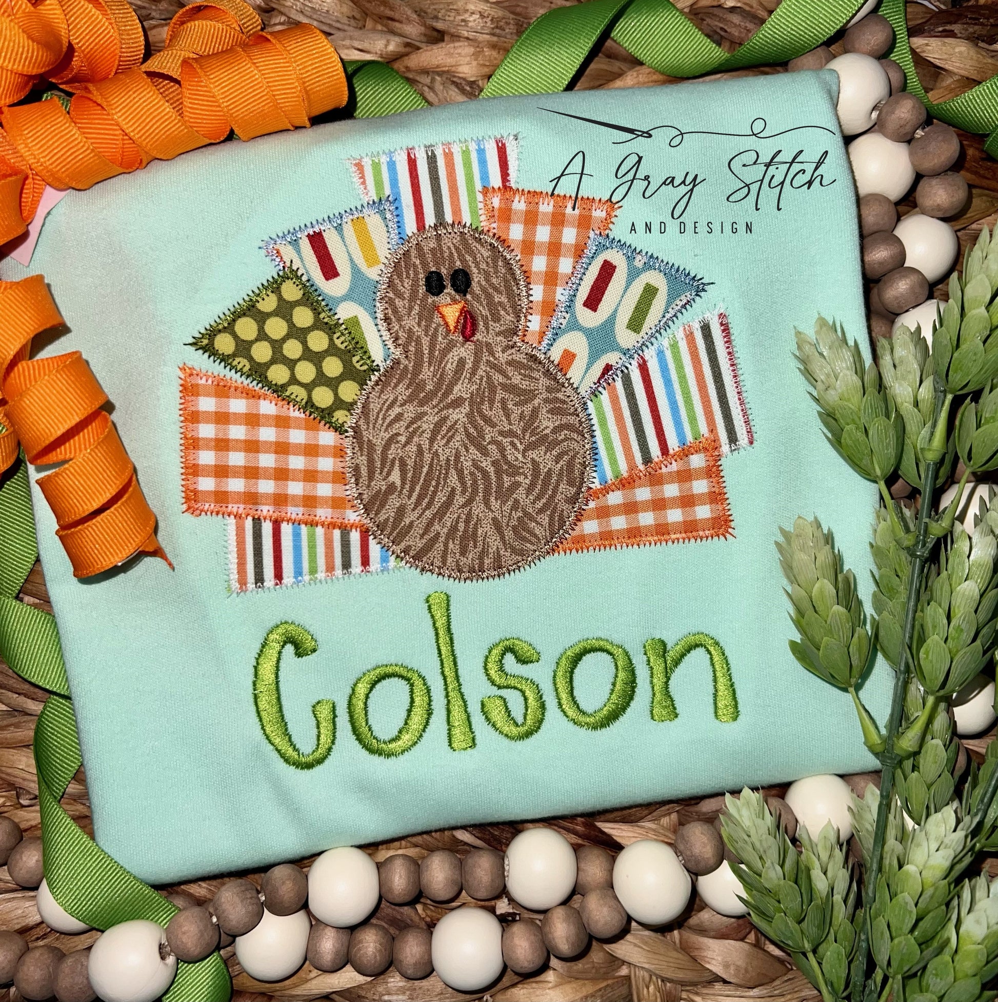 Zig Zag Applique Quirky Turkey Machine Embroidery Design Quick Stitch