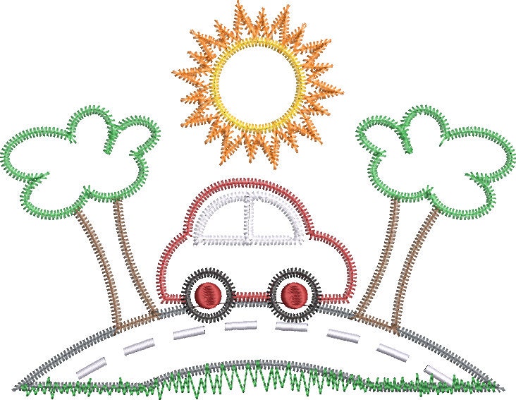 Zig Zag Applique Riding Car Summer Boys Machine Embroidery Design